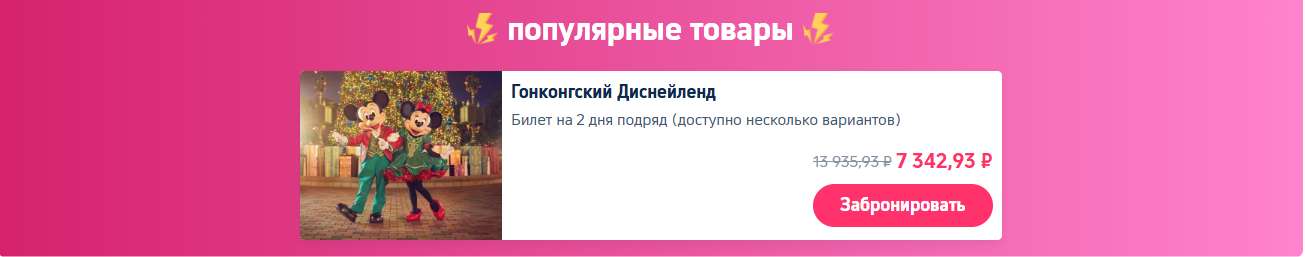 - 2. Выберите нужную категорию: отели, полёты, развлечения и т. д.