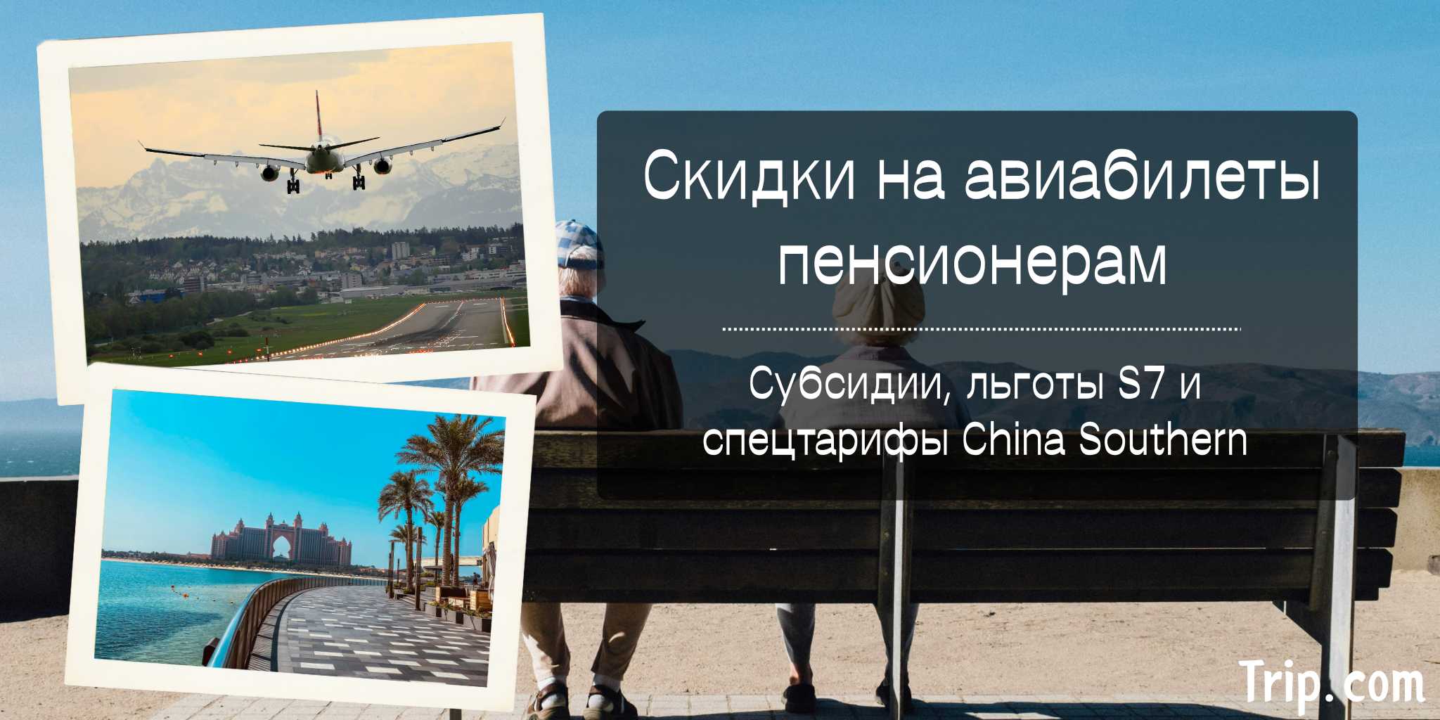 Внутри РФ ищите субсидированные билеты у S7 и Аэрофлота. Для международных полетов проверьте спецтарифы для пожилых у Авиакомпания Южный Китай (China Southern Airlines).Как купить субсидированный билет?
