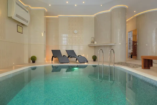 - Современное пространство для релакса: за хаммамом вас ждут 17-метровый крытый бассейн, финская сауна и паровая баня. После процедур приятно выпить детокс-чай в тихой лаунж-зоне.