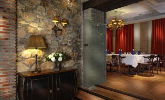 Es un hotel precioso, ubicado en un pueblo tranquilo y agradable rodeado de naturaleza. Cenamos en el restaurante y la comida estaba riquísima. El desayuno espectacular.