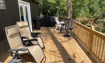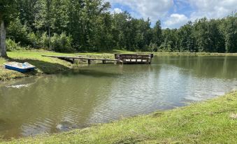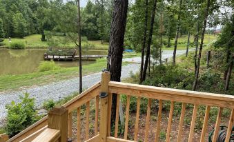 1/2 mile private driveway to country farm cabin, 480sq ft, above cabin sitting mid 160 Acres with beautiful views.Large deck. Separate living area with comfortable pull out bed couch, table, big screen TV, refrigerator, toaster oven, cooking top, coffee pot, microwave. Full size bath/shower with toilet and sink. BR with one xtra full double. Enjoy fishing on private pond, nature trail walking/hiking. Small basketball court by red barn. 12 miles to Erskine and Lander Colleges.