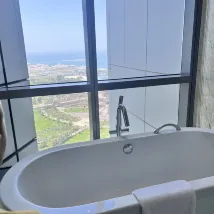 У отеля прекрасное расположение, а персонал очень дружелюбный. Хотя мы останавливались всего на одну ночь и не успели посетить пляж или бассейн, утром мы сходили на смотровую площадку. Действительно, стекло за окном немного портило вид. На завтрак подавали лапшу и другие блюда, подходящие для китайского вкуса.