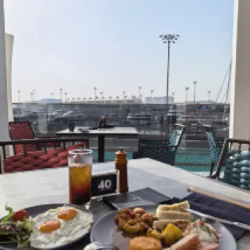 Это действительно W Yas Island! Из окна открывается вид на пристань, а внизу — гоночная трасса. Доехать на такси из аэропорта очень удобно, занимает около десяти минут. Персонал на стойке регистрации работает даже глубокой ночью, и регистрация прошла очень быстро. Завтрак был отличным, обязательно попробуйте яичницу и вкусные омлеты!