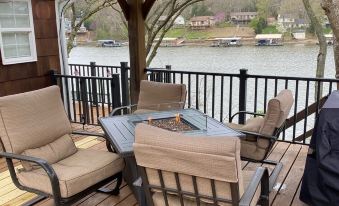 Outside you can enjoy your morning coffee & listen to the birds and other wildlife on the decks that can be accessed via either side of the house. When the coffee is gone, enjoy the lake from either the New 2 slip 60 X 38 Dock, Large swim Platform and shaded area in front of the dock Bar or the smaller swim platform. Water flotation toys and safety/life vests are NOT provided, please bring some with you to enjoy your time in the lake. Or just hang out on the decks, enjoying the sun on one side, or sitting under the gazebo in the shade on the other. And In the evenings, you can roast marshmallows & make s'mores while telling stories around the fire pit (Firewood is NOT provided, please bring your own).