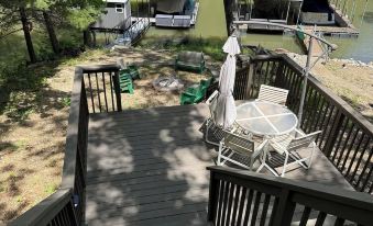Come and relax, enjoy the beautiful scenery at this cozy lakefront cabin with private boat dock featuring one 14x20 slip for guests to use. The other slip has the owner's personal boat in it and is for Owners Use Only. There is a nice size swimming platform for enjoying and relaxing in the sun or fishing. The cabin offers an ideal setting to unwind and embrace the beauty of the outdoors! Fun for the whole family or perfect for couples! Nestled at the end of Bailey Hollow Cove by water at MM 34, near Captain Ron’s! Cabin home is located on a quiet, paved road within a quick 10–15-minute drive to restaurants, coffee shops, and groceries. The Cave Bar & Grill is 8 minutes away or enjoy dinner and drinks at The Branding Iron which is 7 minutes away. Check out top stars who perform concerts at our Ozarks Amphitheater just 13 minutes away!