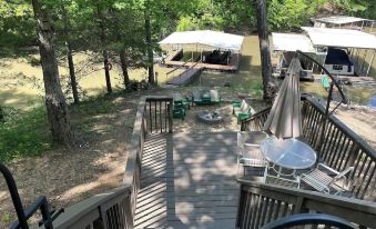 The cabin has multiple decks and a private dock to enjoy the beautiful lake scenery! Sit and relax on the spacious upper deck and grill dinner or enjoy some drinks on the Margarita Deck! Firepit for relaxing and roasting marshmallows as night falls! There is a security ring camera on the back of the house facing down to the dock. This camera is for security purposed only.