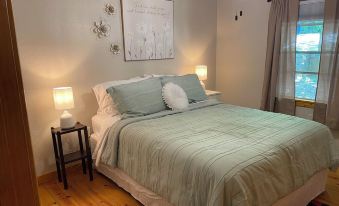 The cabin has approximately 1000 sq ft of coziness! There are two smaller private bedrooms. Master bedroom has king size bed with private bathroom with tub/shower combo. Guest room has queen size bed and closet. Newly remodeled hall bath has stand up shower. The living area features 2 full size futons, a smart tv, and electric fireplace. The kitchen is equipped for all your cooking needs with separate coffee bar area. Please note the cabin does not have a dishwasher. All dishes must be washed by hand and put away. The laundry room has washer and dryer available. High speed, reliable wifi internet is available for guest use but must use own logins for Hulu, Netflix, YouTube tv, etc.