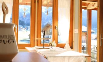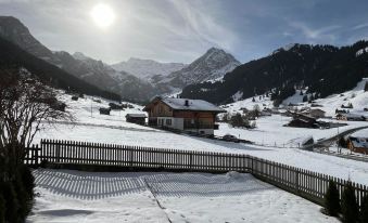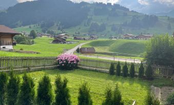 65 m2. More information by the provider: This renovated 2.5-room apartment on the first floor of a two-family house offers a lot of comfort on 65m². You can enjoy the mountain view from the covered terrace. The kitchen is equipped with an oven, dishwasher and Nespresso machine. In the living room you will find a sitting area, stove, TV, radio. WLAN available. The bedroom has a double bed and the bathroom has a bath, shower and WC. Practical: The bus stop in front of the house takes you to the ski slope on the Chuenisbärgli in just 2 minutes and to the center of Adelboden in 10 minutes. Behind the house is the Boden cross-country ski trail.