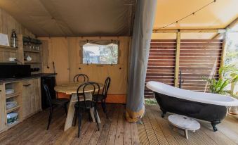 We enjoyed our stay here very much. Our pet-friendly cabin had a secure verandah, great amenities and everything we needed for an overnight, or longer, stay. The staff were friendly and helpful, giving recommendations for dinner and things to see.