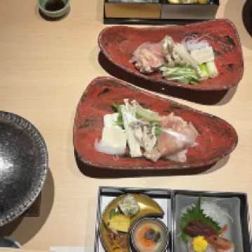 Еда хорошая, и выбор блюд очень большой. Есть несколько онсэнов (горячих источников). Персонал очень приветливый. Атмосфера прекрасная, расположен рядом с водопадом.