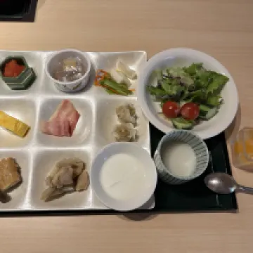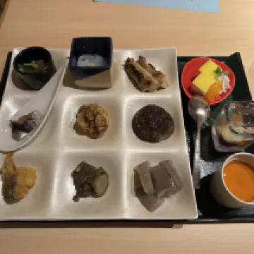 Отличный завтрак... очень традиционный японский завтрак, сочетающий в себе комплексное меню и шведский стол. Онсэн великолепен, с видом на водопад.