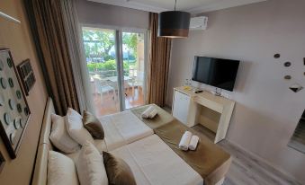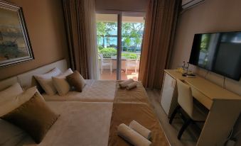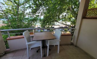 Denize sıfır konumda olup kendine ait plajı olması mükemmel. Burası sadece otel değil hem kafeterya hem lokanta, hem Restaurant hem de sahil işletmesi şeklinde hizmet veren kompleks bir yapı. Otel hizmeti sanki bu kadar yer açtık bir tane de otel yapalım der gibi yan iş olarak açılmış sanki. Neden böyle diyorum otel için yer ödemesi yapıp gittiğimde otel ile ilgilenen birini bulmakta zorlandım. O ona o ona yönlendirdi sonra bizde öyle bir kayıt yok dendi ama iyi ki biri inisiyatif aldı ve sorun büyümeden çözüldü. Resepsiyon yok en başta anahtarı biri veriyor size gidip yerleşiyorsunuz. Otele üvey evlat yapılması dışında hiç bir sorun yok. Temizlik, merkezi konum, manzara, odada bulunan eşyaların yeterliliği ve çalışması vs herşey uygun. Sonuç olarak fiyat performans oteli.