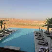 Расположенный в самом сердце пустыни, этот отель кажется миражом, его обстановка просто невероятна. Закат и звездное небо создают ощущение, будто попадаешь в «Тысячу и одну ночь» – это просто нереально. Архитектура и интерьер номеров выполнены в экзотическом стиле. Мы были здесь во время зимних каникул, и вода в бассейне была совсем не холодной, дети были очень довольны.