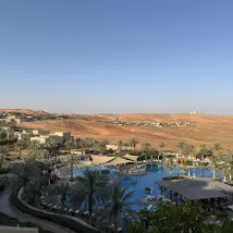 Обстановка: Бассейн в пустыне просто потрясающий, рядом с ним есть водные диванчики, лежать и плавать на них очень круто. Комплекс отеля расположен посреди пустыни, словно мираж.