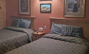 This stay was all that was expected! This is a rustic lodge with cozy rooms. The a/c worked super. The rooms, though cozy, were spotless, very clean and goodly appointed. Bath items such as towels and toiletries were available. The beds are comfortable and clean. Coffee in the. TV with many channels is there. A wonderful front patio area with table and chairs is there, and I met the neighbors as all of us got to experience nice evenigs outside. There is a grill available for those bringing their own items. The hosts are very personable. I honestly had a great stay here! It is a rustic lodge, not a corporate motel and as such may not be for everyone. But I had a better stay here than I have had in many corporate motels. Highly recommended and I may add, Don't pass the opportunity! John