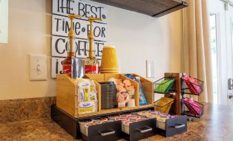 Downstairs, the game room is ready for fun—featuring arcade machines with many different of games, air hockey, and shuffleboard tables. A TV is also available so you can watch your favorite shows or movies while you play.