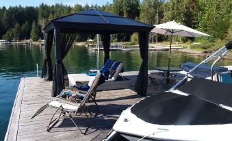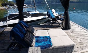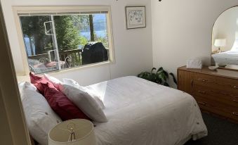 Located on warm, inviting and crystal clear Sproat lake, the jewel of Vancouver Island. This beautiful, fully furnished and equipped two bedroom, one bathroom guest house is ready for your vacation of a life time. Easy lake access, a large dock with a sun shade and lounge chairs, canoes and SUPs available for your use and a play fort with a sand box for the kids make this the best place in the world to be in the summer! We also want guests to understand our entire property is nonsmoking. As well, because we share the property, we do limit the number of guest house guests on the property to 4 at any one time.