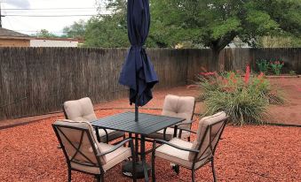 Our stay was perfect for us . We were in for a graduation . Beds were very comfortable and kitchen well equipped . The house was very clean . It was a bonus to have the washer and dryer to be able to put a small load on . Sat outside in the mornings for breakfast before heading out for the day. Our hosts were very welcoming. We would for sure stay again if we were back in Abq . It meet our needs . Thank you for a lovely stay .