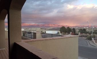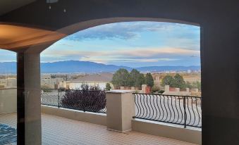 Beautiful modern spacious southwestern custom home with over 4200 sq feet to accommodate a large group of friends and family. You will enjoy a large balcony overlooking the entire City of Albuquerque with stunning views of the Sandia Mountains, Bosque and downtown Albuquerque. The large backyard is great for entertaining your group with a built in gas grill and a private fireplace in the rear patio. There is also an outdoor fire pit to enjoy the cool evenings. The hot tub will provide a relaxing evening after a fun day vacationing in the Land of Enchantment.