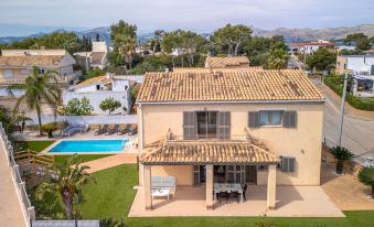 Barcarés 1 km from Alcúdia: Very large, very modern villa "Son Jil", 2 storeys, detached, built in 2005. In a quiet, sunny position residential area (villas), 2 km from the edge of the forest, 60 m from the sea, road to cross. Private: large, well-kept garden with lawn and wildlife garden, swimming pool angular (8 x 4 m, depth 150 - 150 cm, seasonal availability: 01.Jan. - 31.Dec.) with salt-electrolysis pool-cleaning system. Outdoor shower, patio, arbour, pergola, garden furniture, barbecue. In the house: internet access, WiFi, central heating system, air conditioning, washing machine. Public car park, public parking on the road. Shop 1 km, supermarket 1.2 km, shopping centre 45 km, restaurant 160 m, bar, pedestrian zone 50 m, 15 minute walk to the centre, bus stop 1.5 km, ferry 3 km, sandy beach "Platja Es Morer Vermell" 550 m, rocky beach "Platja Es Barcarés" 60 m. Sports harbour 250 m, marina 3 km, golf course (18 hole) 6 km, tennis 2.5 km, riding stable 2.5 km, sports centre 2.5 km, walking paths from the house 1 km, cycle lane 700 m, children's playground 500 m. Nearby attractions: Ermita de la Victoria, Barcarés, Manresa, Sa Marina, Es Malpas. Ciutat Romana de Pollentia, Alcudia. Port d'Alcúdia, Port de Pollença - Pollença, North Beaches. Hiking paths: Sa Talaia, Es Puig de Sant Martí, Serra Tramuntana Pollença. Please note: suitable for families, suitable for seniors. Object suitable for 8 adults groups of teenagers on request only. Airfield 60 km from the property. "Son Jil", 6-room villa 500 m2 on 2 levels. Object suitable for 8 adults. Spacious and bright, very comfortable and beautiful furnishings: large living/dining room with panoramic window with dining table, TV and flat screen. Exit to the patio, to the swimming pool. 1 double bedroom with panoramic window with 1 french bed (150 cm, length 190 cm). Kitchen-/living room (4 hot plates, oven, dishwasher, microwave, freezer, electric coffee machine) with dining table. Shower/WC. Upper floor: 1 large double bedroom with panoramic window Dressing room with 1 french bed (200 cm, length 200 cm), shower/WC, TV, flat screen, air conditioning and forced-air heating. Exit to the balcony. 1 double bedroom with panoramic window with 2 beds (90 cm, length 190 cm), air conditioning and forced-air heating. 1 double bedroom with panoramic window with 2 beds (90 cm, length 200 cm), air conditioning and forced-air heating. Bath/WC. Large balcony, large patio, lawn, porch. Terrace furniture, barbecue, deck chairs, covered balcony. View of the sea, the mountains and the resort. Facilities: washing machine, iron, children's high chair, baby cot, hair dryer. Internet (WiFi, free). Suitable for families. ETV12609 // Reg. Nr.: ESFCTU0000070430001179370000000000000000000ETV/126094