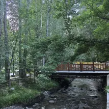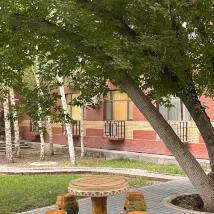 酒店在一個獨立的院子裏,面積很大,停車方便,就餐有單獨的樓,酒店後部有樹林小溪,飯後散步非常不錯,很多樹都掛有銘牌介紹。後面有個將軍山,可登高觀景,酒店前面克蘭河,河對面的阿勒泰街心公園。附近超市也蠻多的,方便補給。
