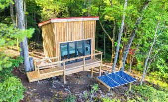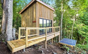 Welcome to the Blue Ridge Parkway Campground, an off-grid Glamping experience nestled in the picturesque Blue Ridge Mountains, just off the Blue Ridge Parkway. This prime location allows guests to explore multiple scenic overlooks within a few miles of the cabin. Built with locally sourced rough-sawn wood, the cabin offers an authentic, rustic experience.