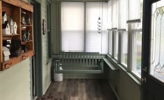 This is our second stay at this house and it's a beautiful place with plenty of room for the five of us. Books and games and a big back yard facing woods for privacy. Wavy and stained glass windows for charm. An enclosed porch with wicker furniture and an old fashioned porch swing. Great kitchen with a table and chairs, plus a big dining room. The half bath at the main level is nice to have, since the main bath is upstairs, as are all three bedrooms. Washer and dryer in the basement. Everything you could ask for, all done tastefully and with much thought. Love it!