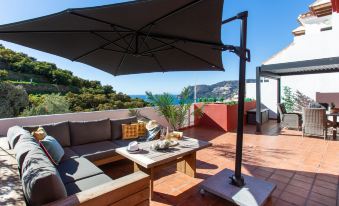 La Herradura: Modern, beautiful, comfortable semi-detached house "Bahia", 3 storeys. In a quiet, sunny position residential area (villas), 700 m from the sea, 700 m from the beach, south facing position. For shared use: lawn for sunbathing, swimming pool angular (16 x 7 m, depth 100 - 175 cm, seasonal availability: 01.Jan. - 31.Dec.). WC in the pool area, outdoor shower, parking space n 3. Shop 700 m, supermarket, restaurant, bar, bakery, café, bus stop 2 km, railway station 60 km, diving center 2 km. Sports harbour 2 km, marina 2 km, golf course (18 hole) 13 km, surf school 55 km, sailing school 2 km. Nearby attractions: Almuñecar, Salobreña, Las Alpujarras, Valle de Lecrin, Nerja, Frigiliana. Well-known ski regions can easily be reached: Sierra Nevada. Hiking paths: Sierra Tejeda, Sierra Almijara. Please note: no lift. The owner does not accept any youth groups. Loading and unloading of baggage is possible at the holiday house. Property ref. ES5400.601.1 is situated on the same property. This beautiful house gets the sun all day and has beautiful views to the bay of la Herradura from every bedroom. Community pool is 30 meters away from property. "Bahia", 5-room semi-detached house 227 m2, south facing position. Spacious and bright, comfortable and beautiful furnishings: living/dining room with digital TV, air conditioning and forced-air heating. Exit to the terrace, pergola. Kitchen (oven, dishwasher, 4 ceramic glass hob hotplates, toaster, kettle, microwave, freezer, electric coffee machine). Exit to the terrace. Sep. WC. Upper floor: 1 room with 1 x 2 bunk beds (90 cm, length 190 cm), air conditioning and forced-air heating. Exit to the balcony. 1 room with 1 double bed (180 cm, length 200 cm), bath/WC, air conditioning and forced-air heating. 1 room with 1 double bed (160 cm, length 200 cm), shower/WC, air conditioning and forced-air heating. Exit to the balcony. Shower/WC. 2nd upper floor: 1 large room with sloping ceilings with 1 double bed (200 cm, length 200 cm), digital TV, air conditioning and forced-air heating. Exit to the terrace. Porch. Terrace furniture, barbecue. Panoramic view of the sea and the countryside. Facilities: washing machine, iron, children's high chair, baby cot, hair dryer. Internet (WiFi, free). Property has four bedrooms, one really spacious with a seating area and its own private terrace. VUT/GR/06866 // Reg. Nr.: ESFCTU0000180160006597580000000000000000VUT/GR/068668