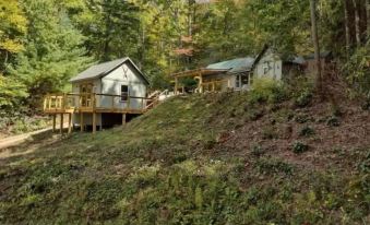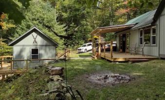 Completely remodeled! Main cabin has full kitchen, full bathroom with washer/dryer and living room. Second cabin attached by deck has beautiful, 2 queen, master bedroom with gas fireplace, side tables with usb ports, new pullout twin sofa couch & private deck. Both cabins have air conditioning.