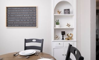This house by far exceeded our expectations, from the outside to the inside. The inside really looked like a home off HGTV. My parents were also traveling with us and they thought our rental looked better than there's. I really loved the fact they don't allow pets and smoking because my children have anaphylaxis reaction to pets as well as other things. This home was very nice and I'm happy we chose this rental. I fell in love with all the art work they had in the home. I even took pics of it to see if I could purchase for my home. If I'm ever in Amarillo again I'm definitely choosing to stay there. *** I did wish they had a lock for the master bedroom door for privacy especially with the little ones, but that isn't a big deal we still had a wonderful time." If you're in Amarillo due stay in the Loft Azul.