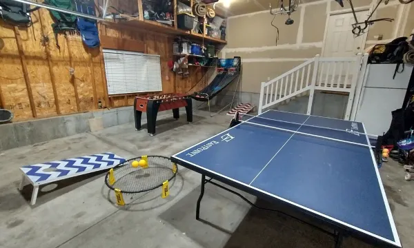 • Transform the 2-car garage into a game zone: Unleash your inner athlete with a ping pong table, foosball table, arcade basketball game, and cornhole.