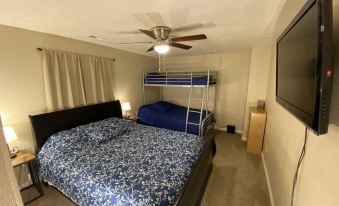 • Basement Bonanza: Immerse yourselves in surround sound movies or shows on the 55-inch TV, enjoy streaming services and Dish network, or challenge each other to foosball, pool, or air hockey on the 3-in-1 game table. Retro Fun: Relive nostalgic moments with the arcade video player featuring 7 classic games like Pacman and Galaga Plenty of games, childrens books, and childrens toys.
