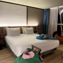 Мой любимый отельный бренд в Юго-Восточной Азии. Я останавливался в Лаосе и на Бали, и выбрал тот же бренд, когда приехал в Амстердам. Однако он оказался довольно посредственным. Возможно, они были настолько любезны, что предоставили номер с видом на реку, но вид на улицу был невероятно шумным. Звукоизоляция была настолько плохой, что казалось, будто машина едет прямо рядом с кроватью. Было очень шумно, так что будьте осторожны, останавливаясь там! В отеле жили ещё двое, так почему же они положили один набор туалетных принадлежностей и одну бутылку воды? Я не понимаю, правда?