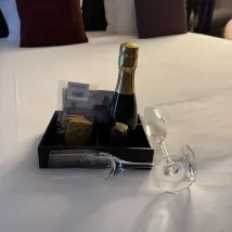 Я написал им за несколько часов до нашего заселения, чтобы они что-нибудь сделали для нашего друга, который празднует свою годовщину, и был поражен, что они подарили маленькую бутылку шампанского с печеньем и запиской. Это было действительно мило с их стороны. Большое спасибо.