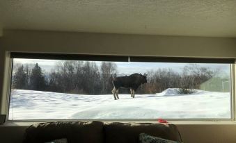 Beautifully furnished, this luxurious and spacious studio features 1000 square feet of space! Situated on 5 acres, this rare property offers seclusion with lots of daylight, windows and sunsets galore! Located about 20 minutes from the airport & downtown. King size Sleep Number bed with adjustable controls offers the perfect nights sleep after working or adventuring in Alaska! Fully equipped full sized kitchen! Large soaking bathtub! Washer & dryer. Free parking. Wi-fi. Private entrance.