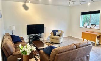 This 2 Bedroom Home away from home features a patio, a fully equipped kitchen with a dishwasher, a seating area, a flat-screen TV living area and private TV's in each bedroom, a washing machine, and a private bathroom with shower and a hairdryer. This unit has a large private deck, bbq and lawn furniture for sun bathing or outside dining.