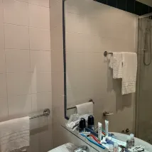 Хороший отель, мы выбрали его из-за его расположения напротив железнодорожного вокзала Анконы, но он также удачно расположен: на автобусе можно добраться до центра или порта Анконы. Все было очень комфортно. Персонал на стойке регистрации отеля был очень внимателен и дал нам советы и объяснил, как передвигаться по Анконе. Блестящий