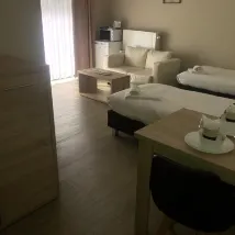 They have decent rooms and studios, pretty clean, good heating, quiet, availability most of the time and also a loyalty program. I am a constant client. There is a kitchen corner with spacious fridge, microwave, water heater, cutlery, some dishes and they also provide a tea, coffee and candies to the guest :).