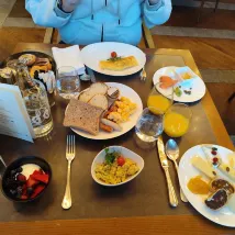 This hotel is incredible, the rooms are stunning, staff takes care of every need. The view from our room was gorgeous. We ate dinner in the bar area, food was good, drinks were awesome. Breakfast had so many choices. I would give this place 10 stars if I could