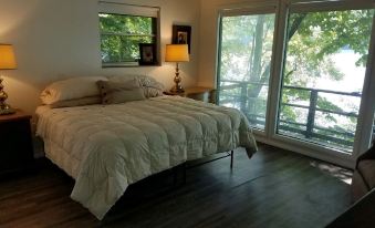 The lower level includes a secondary living space with a sofa and bathroom. Please contact host to discuss use of queen size inflatable mattress and linens.