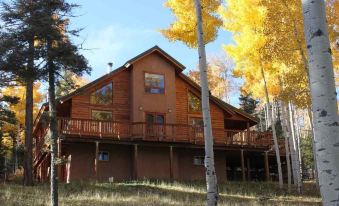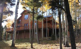 This charming mountain cabin has been well maintained and ready for you next family vacation. The lot is one acre with lovely stands of aspen and fabulous views from the many windows and from the large decks, perfect for entertaining. The extra long garage can easily fit 2 cars. This home will sleep up to 8 people. Wildlife love it and so will you! Approximately a ten minute drive to the ski area and only a five minute drive to Angel Fire Resort Country Club.