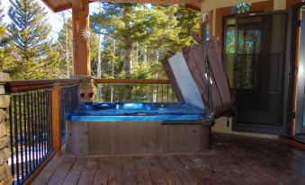 Nestled in serene wilderness, Cougar Lodge invites you to unwind amidst nature’s splendor. Gather on the wrap-around deck, where mountain views and frequent visits from deer, elk, and birds create a truly enchanting experience. Enjoy the outdoor kitchen, cozy fire pit with Adirondack chairs, and heated floors to keep you warm even on the chilliest nights.