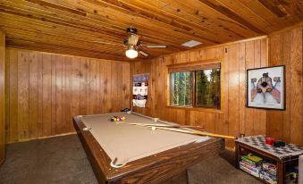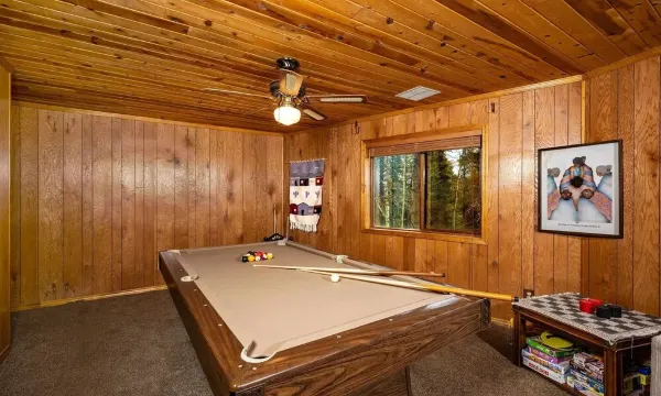 The game room boasts a full bathroom and pool table.