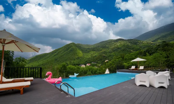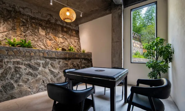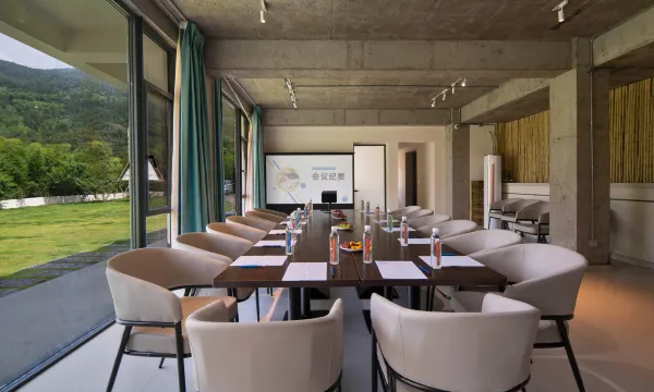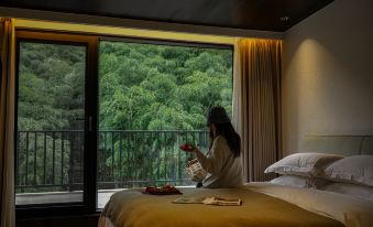 Nestled in Shenshixi Village, Baofu Town, Anji County, at an altitude of 700 meters on a mountain slope, this retreat is surrounded by rolling hills, fruit orchards, and streams that meander down from the peaks. The guesthouse harmonizes beautifully with the sea of bamboo, creating an atmosphere reminiscent of the idyllic scenes described in 'Peach Blossom Spring'. It offers amenities such as a restaurant, a stream-wading spot, a swimming pool, a pet-friendly pool, hot spring baths, a KTV, a billiards room, a conference room, a game room, a barbecue area, a grass camping zone, a children's playground, and a beekeeping area.