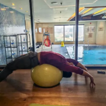 Но мне все равно больше нравится его тренажерный зал, в котором есть небольшая комната для йоги, которую можно закрыть, и крытый бассейн на полэтажа ниже. В целом тренировка оставила приятные впечатления.