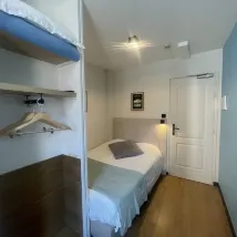 Отель расположен менее чем в десяти минутах ходьбы от железнодорожного и автобусного вокзалов Анси, что очень удобно. Номера компактные, с небольшим лифтом и платным завтраком. Ванная комната небольшая, но чистая. Сотрудники стойки регистрации говорят по-английски на среднем уровне, но очень отзывчивы. В номере нет маленького холодильника и пакетиков с чаем или кофе, но можно попросить чайник, бумажные полотенца и кофе. Ванные комнаты в трёхзвёздочных отелях Европы, как правило, небольшие, что делает их неподходящими для людей крупного телосложения.