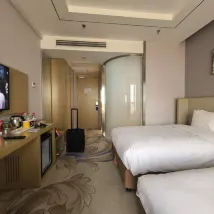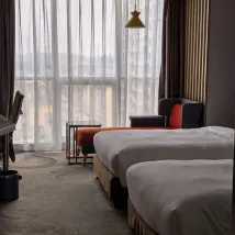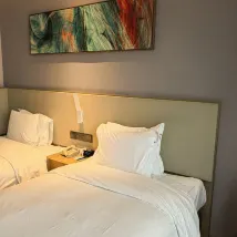 Отель расположен в отличном месте, рядом с множеством магазинов и ресторанов, предлагая отличное соотношение цены и качества. Номер был приличного размера, чистым и комфортным. Несмотря на расположение рядом с главной дорогой, звукоизоляция была отличной и не мешала мне спать. Из номера открывался вид на часть Аньшаньского металлургического комбината с его многочисленными доменными печами – поистине захватывающее зрелище. Завтрак был достаточно разнообразным, с хорошим количеством и качеством. У отеля есть собственная парковка, хотя наземная немного тесновата, поэтому подземная парковка очень удобна. Персонал на стойке регистрации был дружелюбным и предупредительным.
