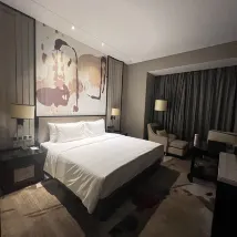 Отель очень величественный, вокруг него много мест, которые стоит посетить. Он находится очень близко к Музею китайских иероглифов и Музею Аньяна и расположен в центре города. Путешествовать удобно, брать такси тоже очень удобно. Рядом находится коммерческий центр и специализированные рестораны Аньяна. В общем, это высококлассно и атмосферно. Большой и элегантный вестибюль, дизайн которого отражает исторические и культурные особенности Аньяна. В вестибюле также проводятся выступления по гимнастике Oracle, метание горшков и другие мероприятия. Детям это понравилось, и они прекрасно провели время. Охранник у двери был очень профессионален и делал вдумчивые напоминания. При входе в вестибюль персонал тепло приветствовал их. На приветственном чайном столике были кола, черный чай, зеленый чай и кипяченая вода. Они были очень внимательны, и администратор, который регистрировался, был очень приятным, подтвердил мои предпочтения и эффективно завершил процедуру регистрации. Позже консьерж с энтузиазмом помог мне донести багаж до номера. Комната довольно большая и чистая. Убирают каждый день. Оборудование в номере очень новое, полностью оборудованное, простое в использовании, а ванная комната очень чистая. На 5 этаже есть бассейн с подогревом, с подводной музыкой, инструктор нежный и профессиональный. Приветствия от номера до вестибюля каждый день очень позитивные. Персонал, обслуживающий завтрак, также с большим энтузиазмом предлагает блюда как китайской, так и западной кухни с местными особенностями. Отель очень тщательный. От регистрации до отъезда уровень обслуживания очень высокий, а профессионализм безупречен. В номере имеются туалетно-косметические принадлежности для детей. Имеется подземная парковка с достаточным количеством парковочных мест, удобной парковкой и выделенным руководством. Скорость интернета в отеле довольно быстрая. Ответ экспресс-службы также очень быстрый, голос нежный, эффективный и быстрый. В целом удобства отеля полностью укомплектованы и хорошо оборудованы. Аньян — город с культурой и наследием. Он подходит для игр и учебы детей. Моей семье он очень нравится. В целом, это очень хороший отель.