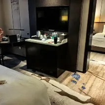 Больше всего меня впечатлило отличное обслуживание. Мы приехали туда в 2 часа ночи, и на земле и под землей были парковщики, и все они были девчонками. Они действительно были отпрысками хорошей жены. 👍🏻Девочки потрясающие. Обслуживание в вестибюле и ресторанное обслуживание на высоте. Закуски также доставлялись в номер дважды, включая закуски, фрукты и йогурт.