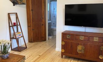 The guesthouse is located on 5 acres at the end of a cul de sac. The house is a 600 SF 1 bed/1 bath with a full kitchen, laundry room and workspace/infrared sauna room. Hardwood floors throughout. A covered, heated patio with propane BBQ and fire pit for you to enjoy the solitude.About pets:No pets allowed.About children:Children allowed: ages 0-17.About customRules:If you are a local resident, you must contact us before booking..Guests who make reservations over 30 days a sign our standard lease agreement.,For your security and protection, there are cameras located at the front gate of the property..About smoking:Smoking allowed: in designated areas.About events:No events allowed.